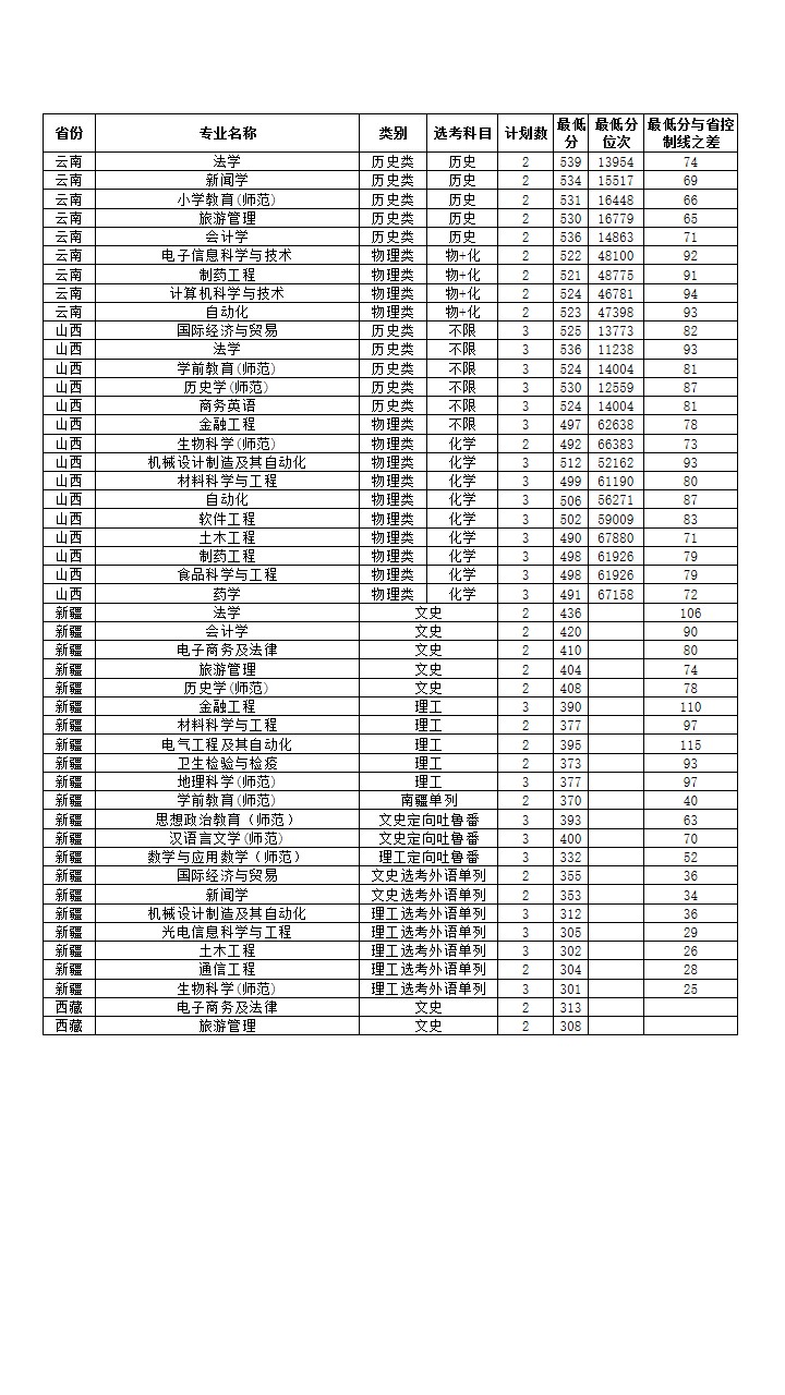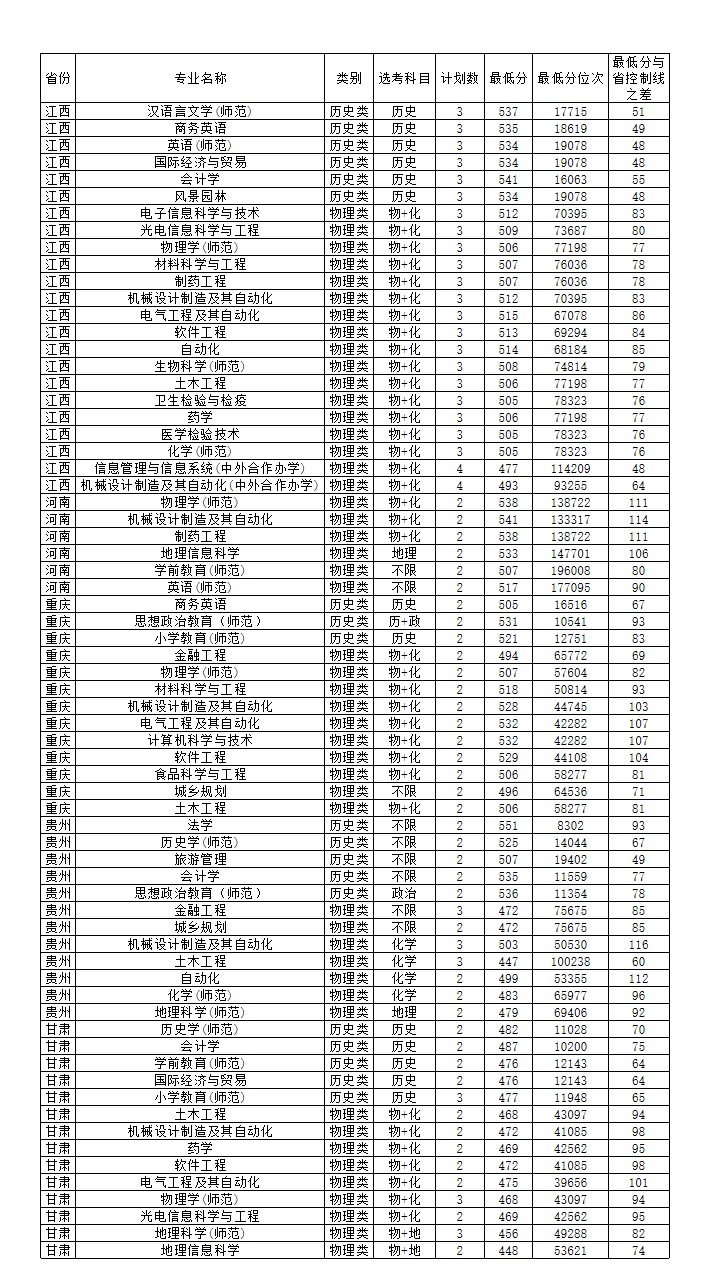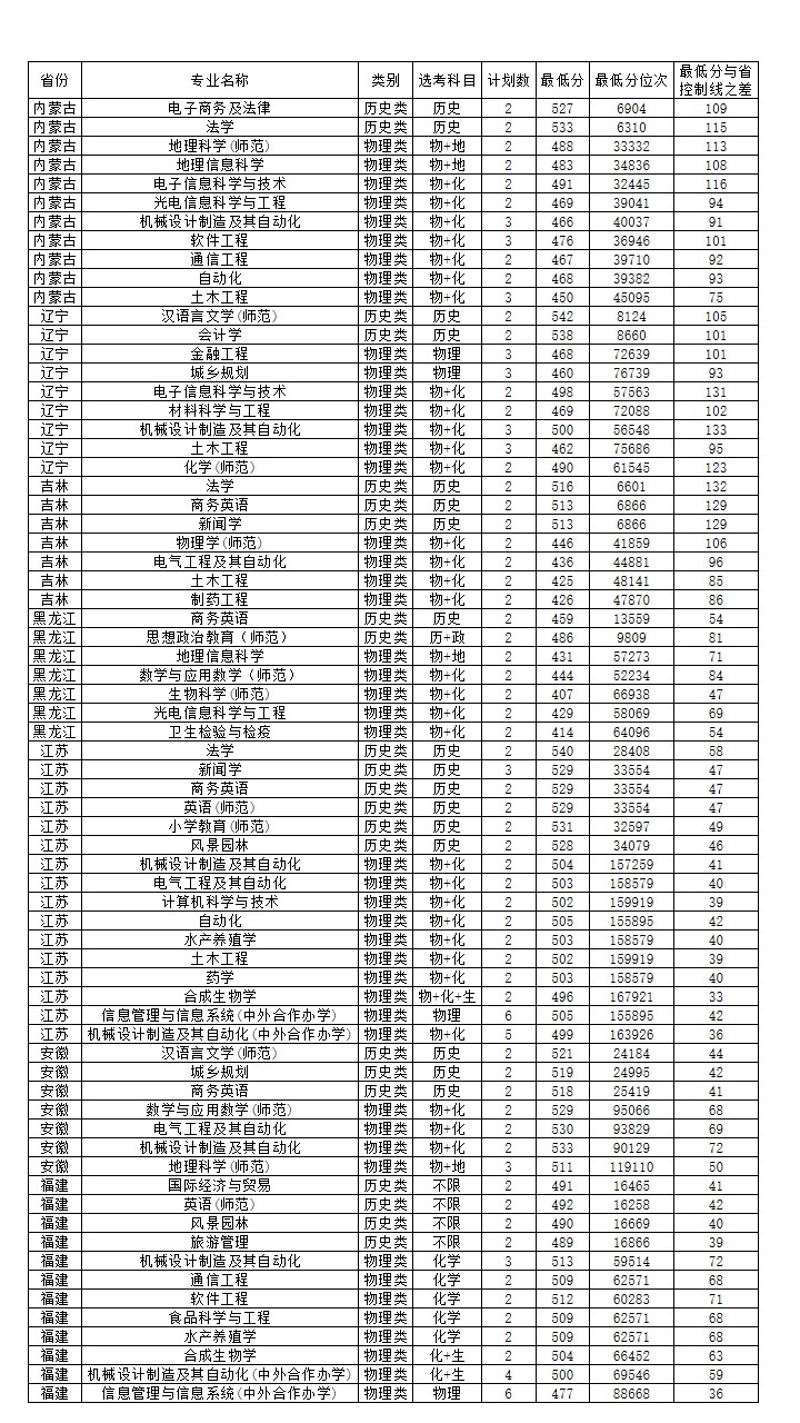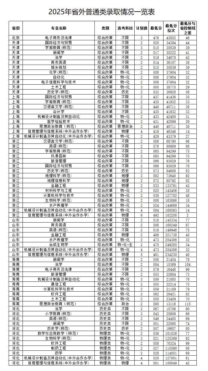 2025年省外普通类录取情况一览表
